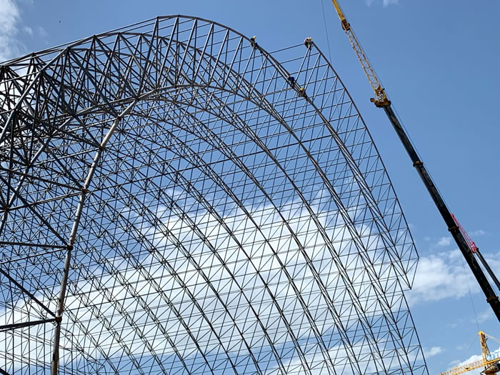 (2)网架加工前应对现场尺寸进行复测,确认无误后方可进行加工、安装;网架制作、运输、安装应遵守《空间网格结构技术规程》JGJ7-2010、《钢网架三门峡螺栓球节点》JG/T 10-2009、《钢网架三门峡螺栓球节点用高强度螺栓》 GB/T 16939-2016、《三门峡钢结构三门峡工程三门峡施工规范》 GB50755-2012、《三门峡钢结构三门峡工程施工质量验收标准》 GB50205-2020。